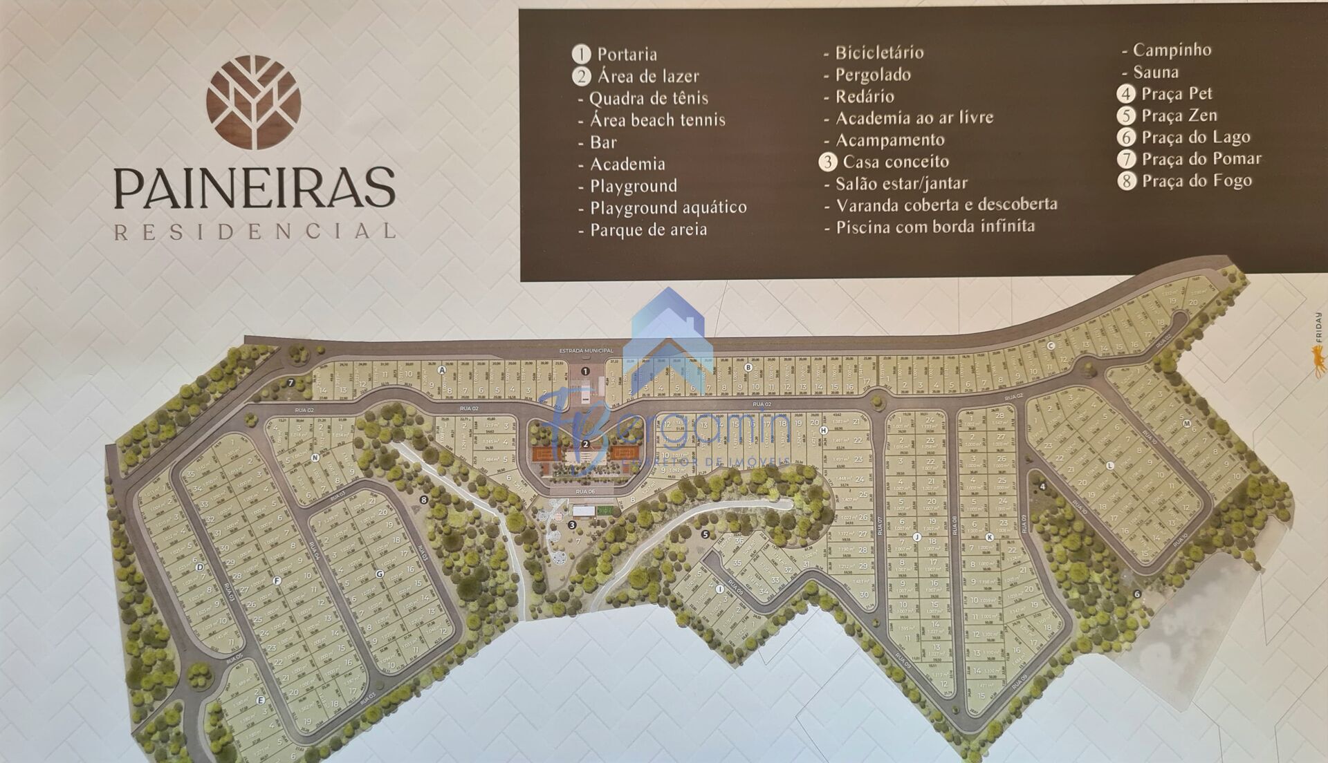 Diversas praças temáticas distribuídas ao longo do residencial, com muitas opções de lazer e descanso para toda família.